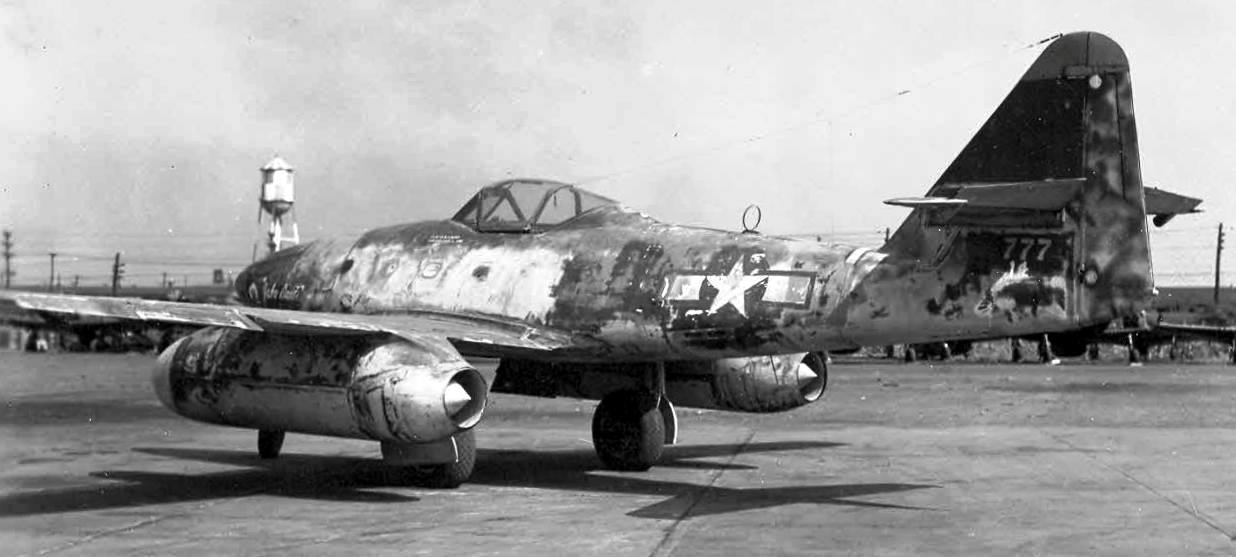 Messerschmitt Me 262A-1a “Schwalbe“ (Wk. Nr. 110836). Watson’s Whizzers No. 777, this aircraft was initially named “Doris” and later “Jabo Bait”. Shipped to the USA on HMS Reaper, it was designated FE-110, later T2-110. (USAAF Photos).