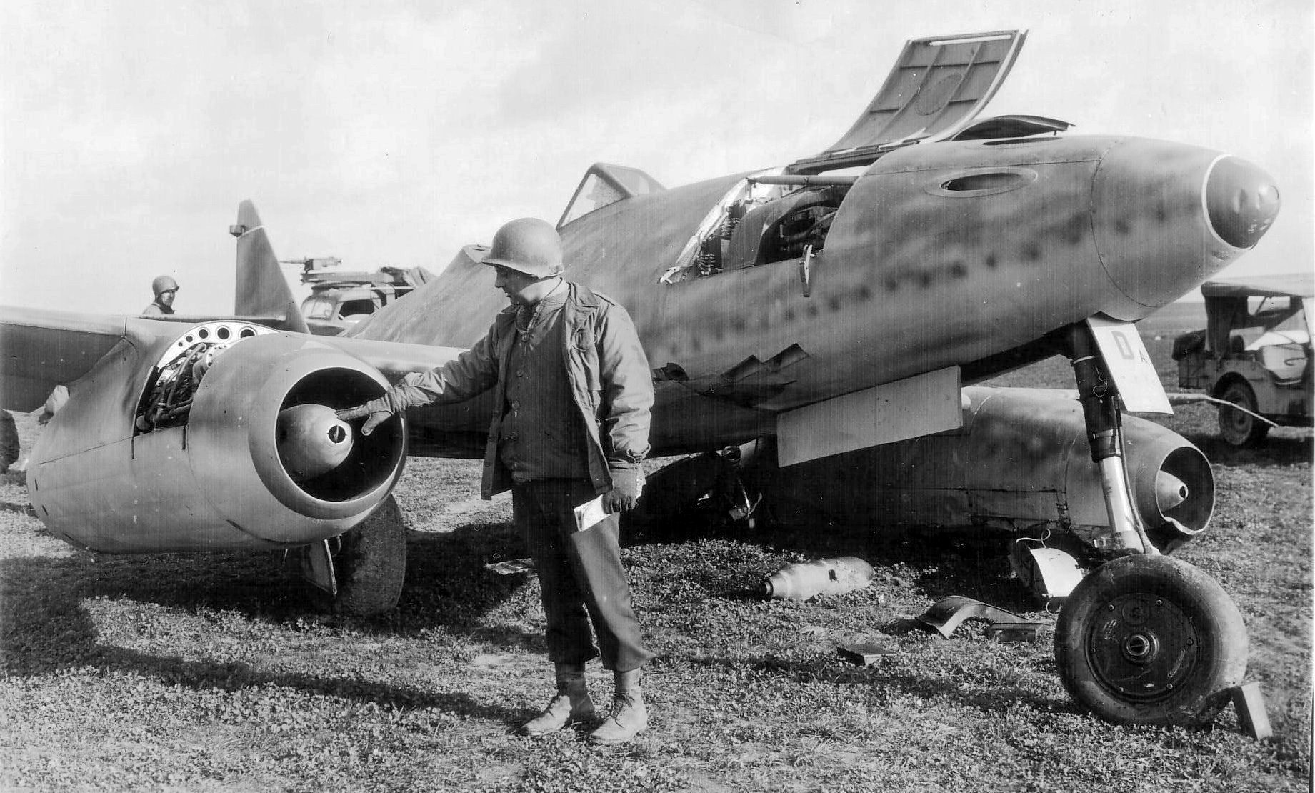 31 March 1945: Messerschmitt Aktiengesellschaft test pilot and technical inspector Hans Fay (1888–1959) defected to the Allies at Frankfurt/Rhein-Main Airfield, Frankfurt, Germany.He brought with him a brand-new Messerschmitt Me 262 A-1 twin-engine jet fighter.Fay had been waiting for an opportunity to bring an Me 262 to the Americans, but feared reprisals against his parents. When he learned that the U.S. Army controlled their town, he felt that it was safe to go ahead with his plan.
