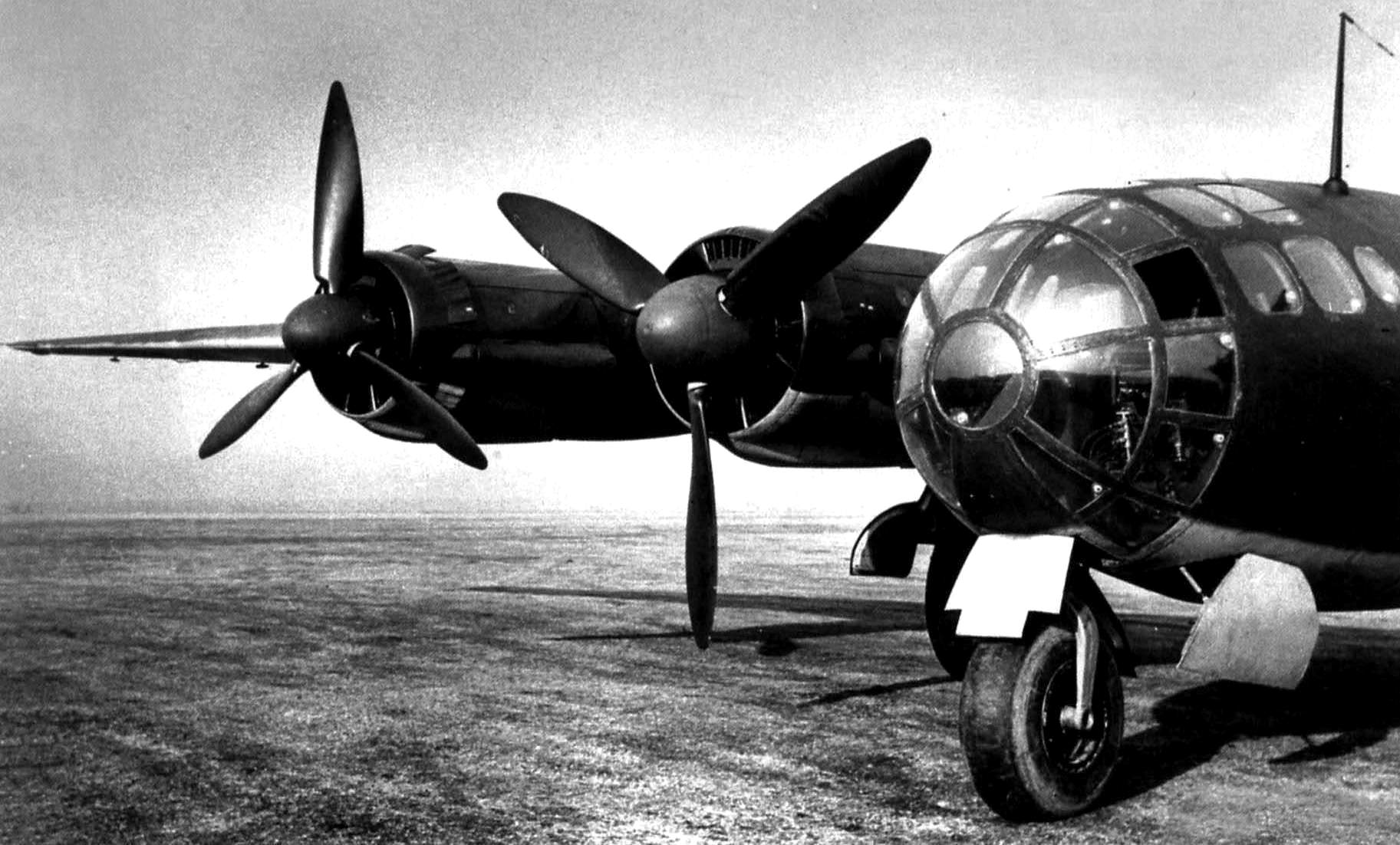 Messerschmitt Me 264 V1 in flight. The aircraft’s original Junkers Jumo 211 inline engines (pictured here) were replaced with BMW 801G radials in late 1943.