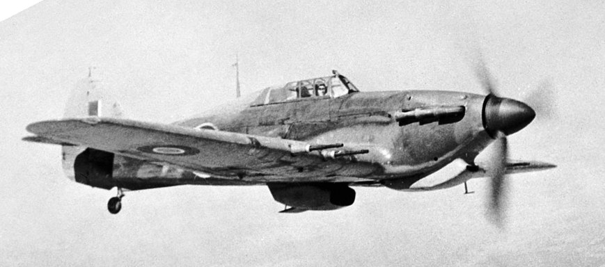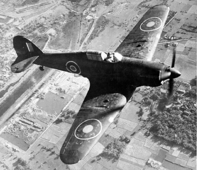 Hawker Hurricane Mk. IIC of No. 166 Wing in flight from Chittagong in India, May 1943.