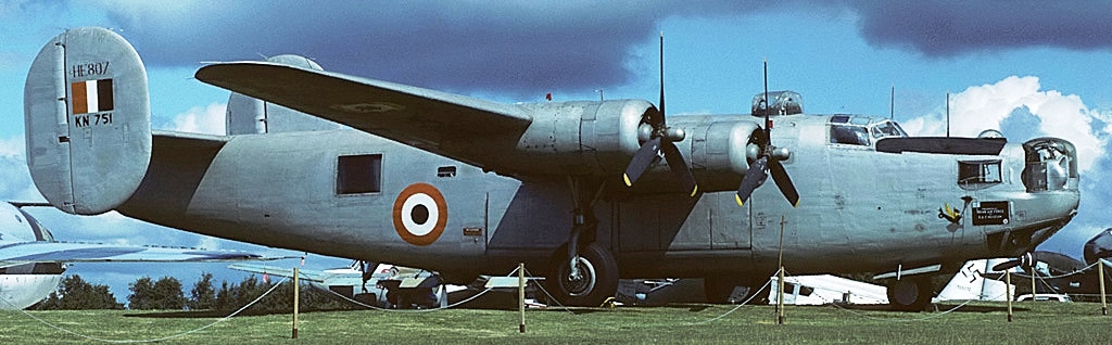Consolidated B-24L Liberator, USAAC (Serial No. 44-50206), Indian Air Force (Serial No. HE-807), presented as a gift to the RAF Museum, photo taken in 1985.  Similar to (Serial No. HE-924) in the Indian Air Force Museum.