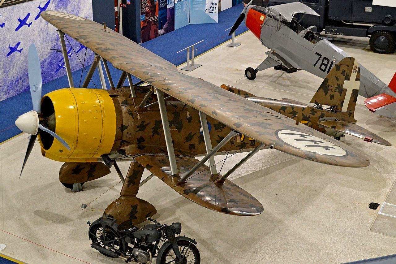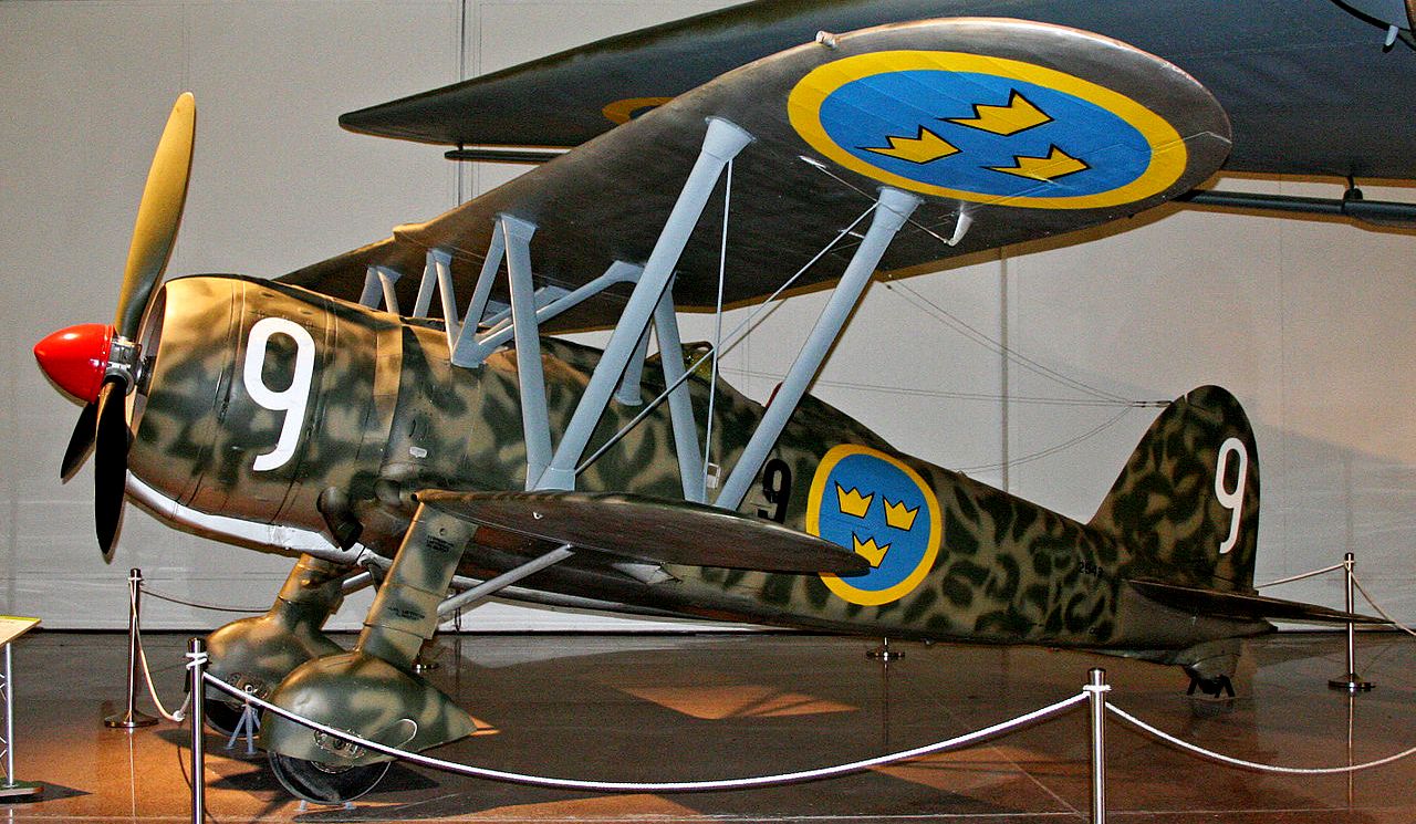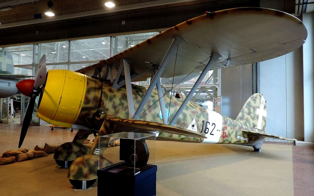 Fiat C.R.42 Falco/J11 Falco or Falk, Serial No. NC.2453, marked as 9 9, the Swedish Air Force Museum, (Flygvapenmuseum, Linköping, Sweden.
