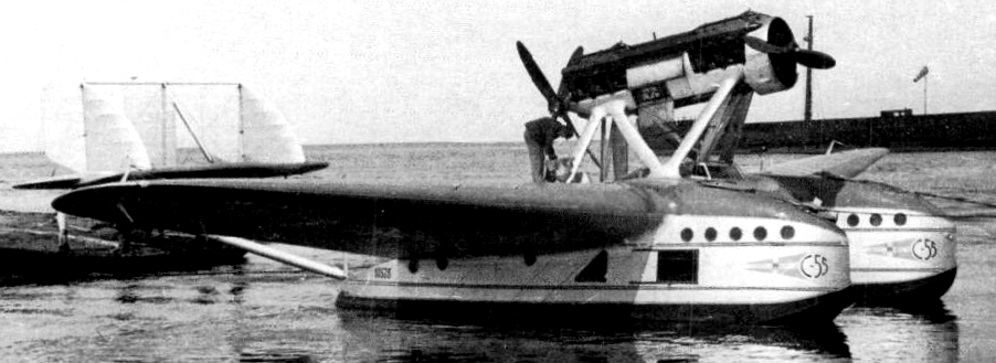 The S.55 featured numerous innovative design features. While the passengers and cargo were housed within the twin hulls, the flight crew controlled the aircraft from a cockpit located in the thicker section of the wing between the two hulls. The S.55 had two inline contra-rotating propellers, mounted in tandem. The engines were canted sharply at an upward angle. Two wire-braced booms connected the triple-finned tail structure to the twin hulls and wing.During August 1924, the S.55 performed its maiden flight. Shortly after its introduction, the S.55 set multiple records for speed, payload, altitude and range. Numerous flying boats saw service with the Regia Aeronautica and export operators such as the Spanish Air Force and the Royal Romanian Naval Aviation as reconnaissance bombers and maritime patrol aircraft. While some examples were active by the outbreak of the Second World War, the type only played a marginal role in the conflict due to their age.