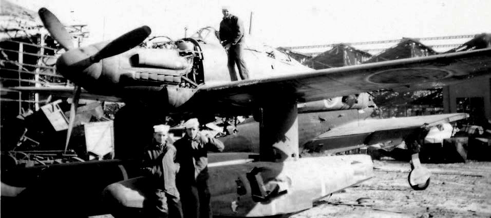 The Aichi M6A Seiran (Clear Sky Storm or Mist on a Fair Day) was a submarine-launched attack floatplane. It was intended to operate from I-400 class submarines whose original mission was to conduct aerial attacks against the United States. A single M6A1 has been preserved and resides in the Udvar-Hazy Center of the Smithsonian’s National Air and Space Museum. It is located in the Washington, DC suburb of Chantilly, Virginia near Dulles International Airport. The Seiran was surrendered to an American occupation contingent by Lt Kazuo Akatsuka of the Imperial Japanese Navy, who ferried it from Fukuyama to Yokosuka. The US Navy donated it to the Smithsonian Institution in November 1962. Restoration work on the Seiran began in June 1989 and was completed in February 2000. There does not appear to be an FE or T2 number for this aircraft.
