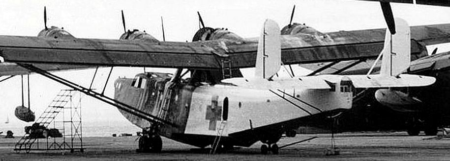 Kawanishi H6K Type 97 seaplane, code-named Mavis wearing green cross surrender markings.