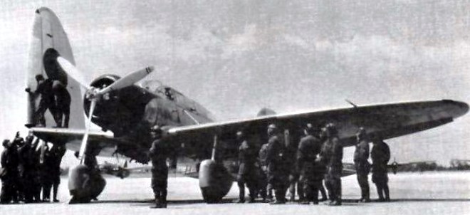 Mitsubishi B5M Navy Taype 97 No. 2 Carrier Attack Bomber, code named Mabel folding its wings, IJNAF.