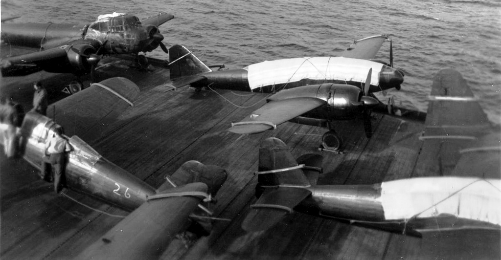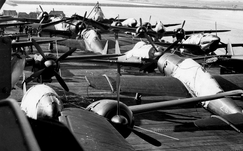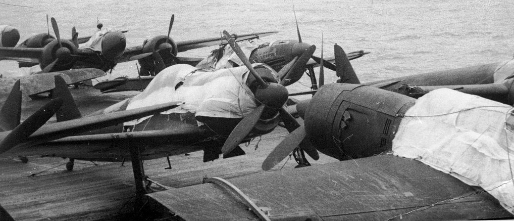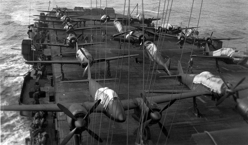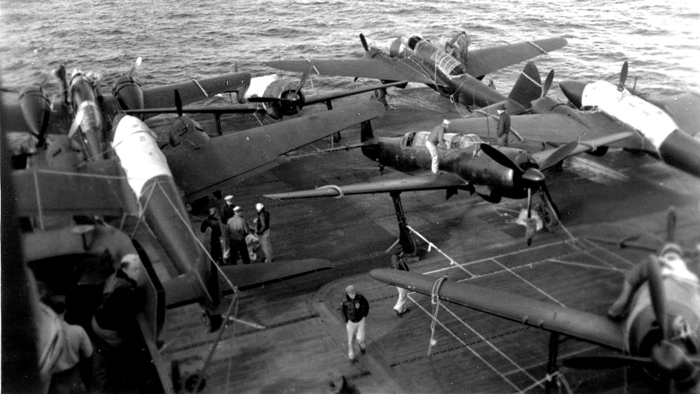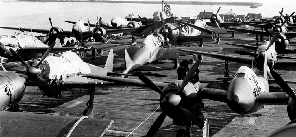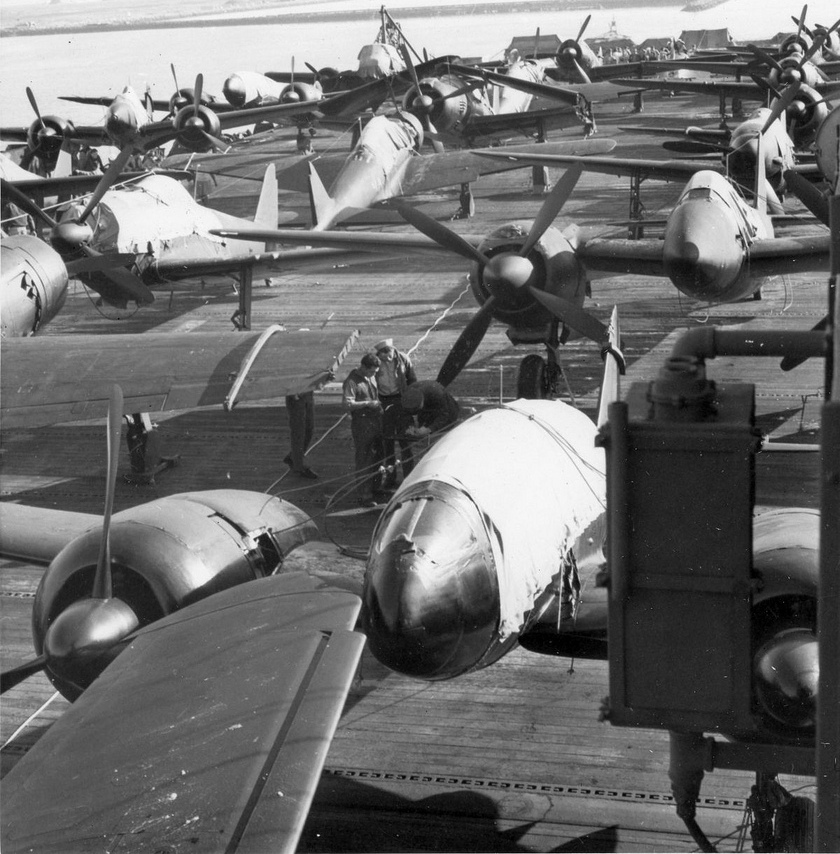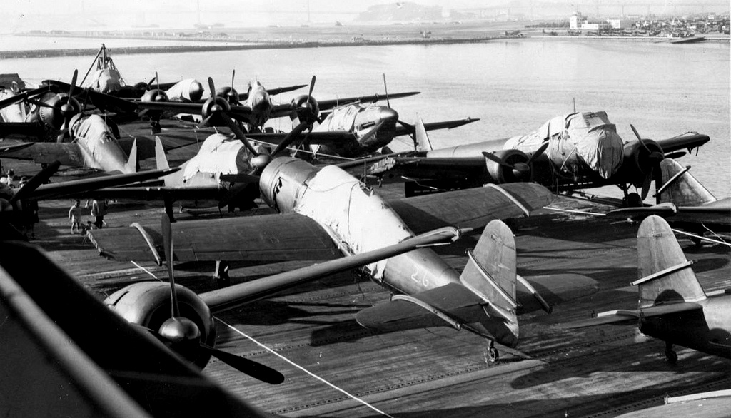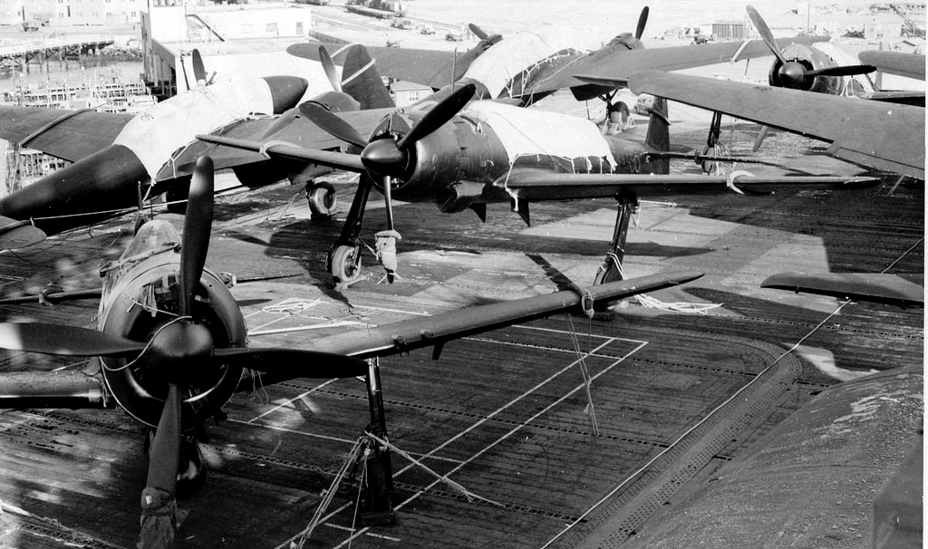 Japanese warplanes onboard the USS Barnes (CVE-20)