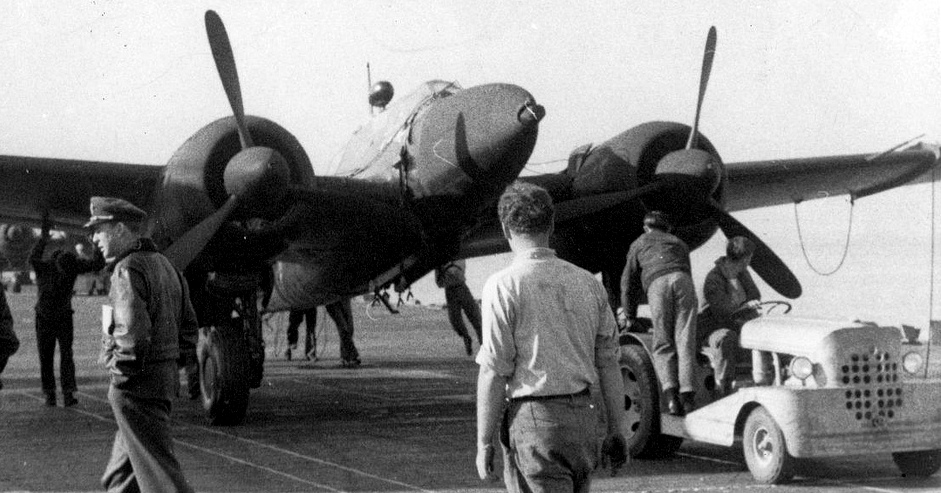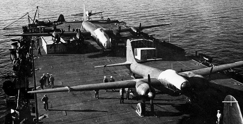 Tachikawa Ki-77 being shipped to the United States aboard the carrier USS Bogue from Yokosuka in December 1945.  It arrived at Alameda, California on 8 January 1946, where it was examined before being scrapped.