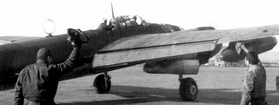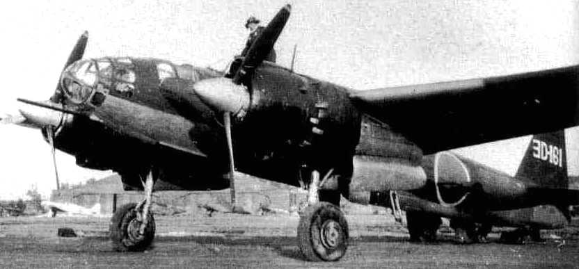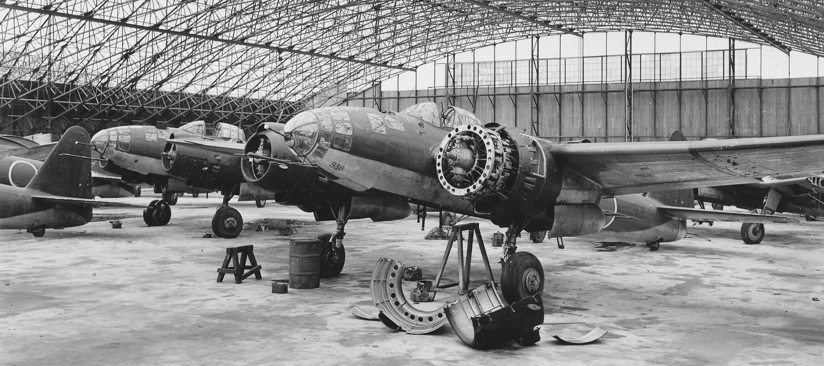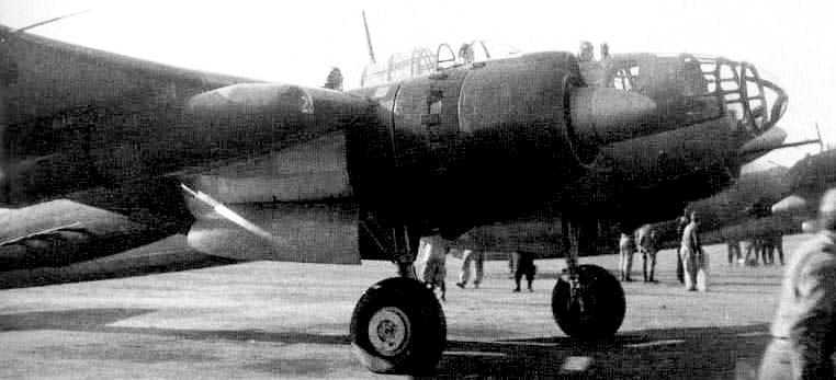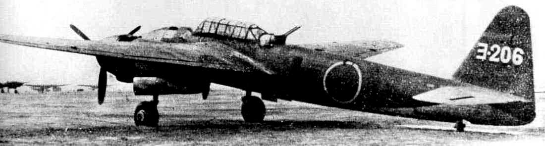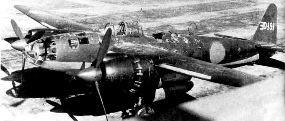 Yokosuka P1Y2-S Ginga night fighter version of the Frances, equipped with radar and 20-mm slanted upward firing Schräge Musik style cannon. Kisarazu Naval Air Base near Tokyo, late 1945.