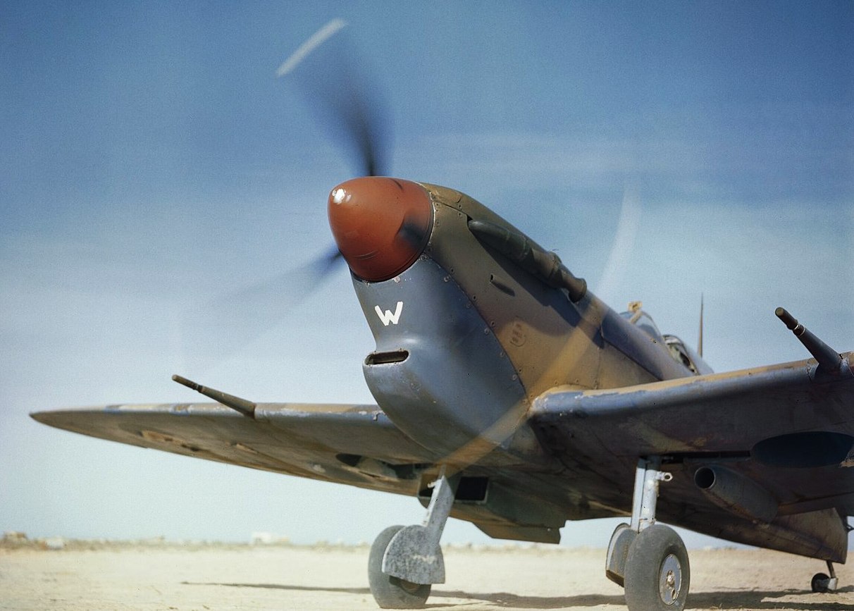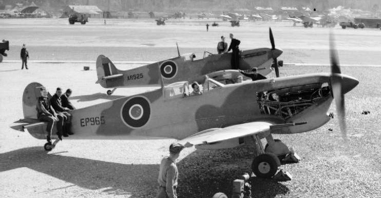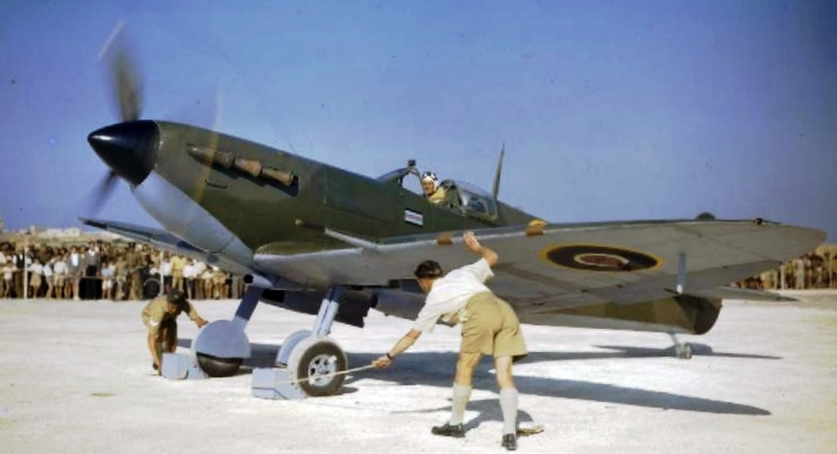 Royal Air Force Air Officer Commanding Malta, Air Vice Marshal Keith Park, about to taxi out in his personal Supermarine Spitfire V to mark the opening of Malta’s new airstrip at Safi.