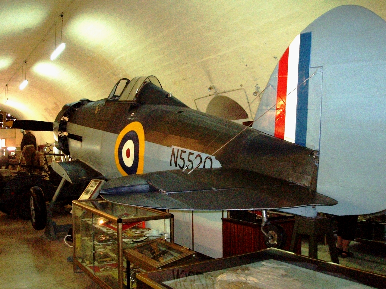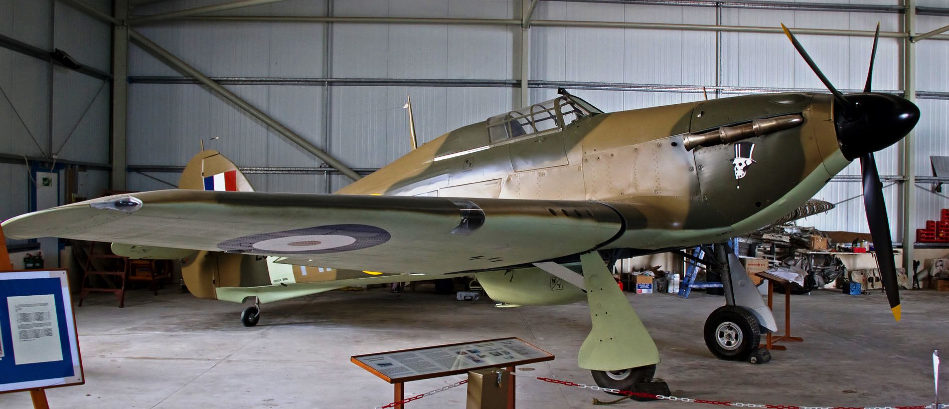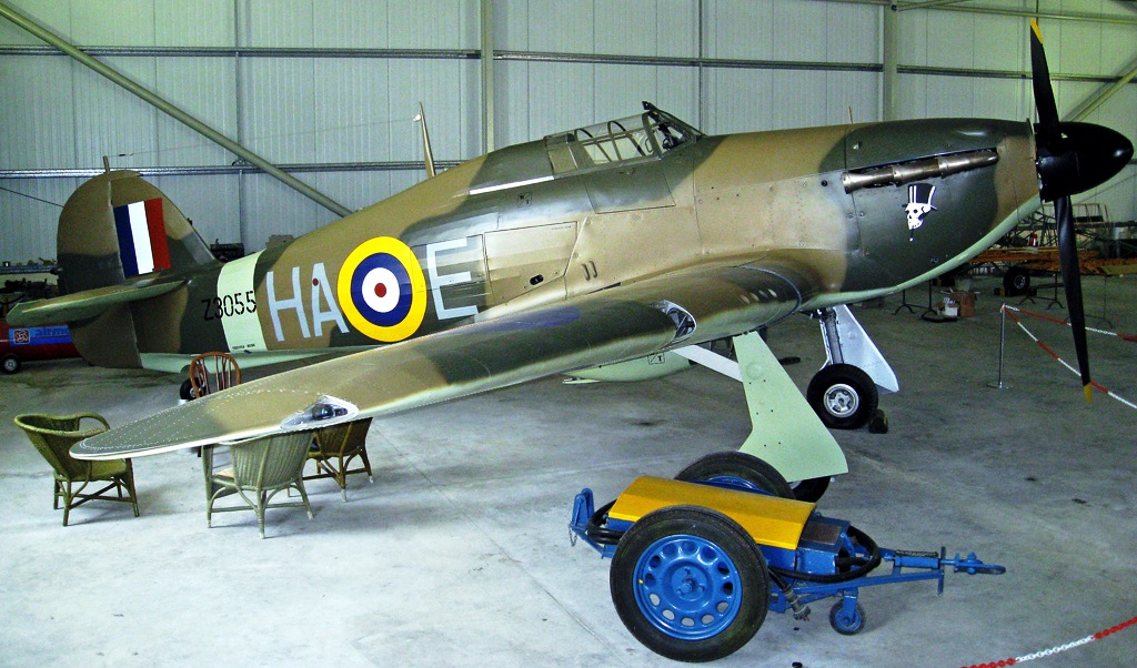 Hawker Hurricane Mk. IIA (Serial No. Z3055), RAF No. 46 Squadron, exhibited at the Malta Aviation Museum. This aircraft took off from Safi strip just before daybreak on 4 July 1941. For some unknown reason, the pilot, Sgt. Thomas Hackston, crashed into the sea (his body was never found). The Merlin XX powered aircraft, one of forty-two Hurricanes delivered to Malta in “Operation Rocket”, had flown off the carrier HMS Ark Royal, barely a month earlier. The fighter was located by diver David Schembri, at a depth of 40 meters only a short distance from the coast off Wied Iz-Zurrieq in 1993 . It was salvaged two years later.