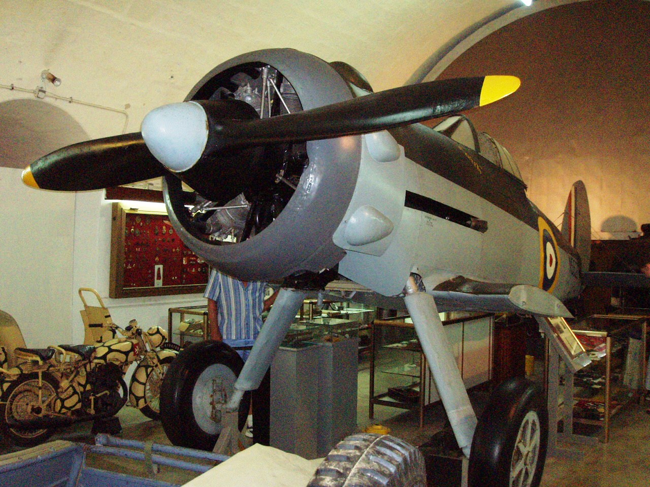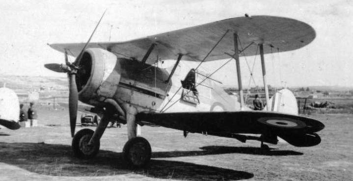 Gloster Sea Gladiator Mk. I (Serial No. N5520), one of three Sea Gladiators which successfully defended Malta against the Italian Air Force until relieving Hurricanes and Spitfires could be shipped there. National War Museum, Valetta, Malta.
