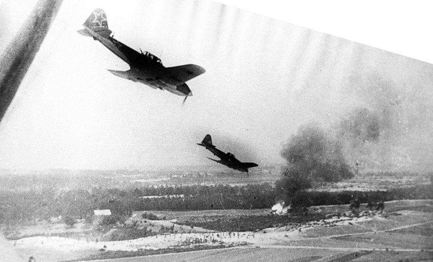Ilyushin Il-2 Shturmoviks attacking a German column during the Battle of Kursk.
