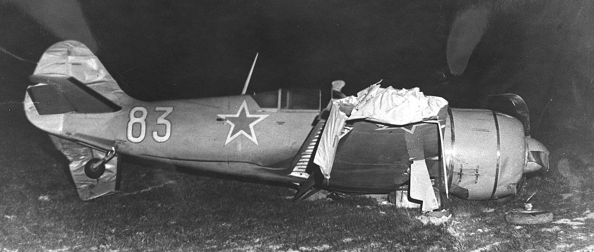 Lavochkin La-7 crash in Sweden in 1949, by a defecting Soviet pilot.