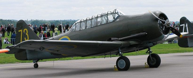 North American Harvard Mk. IIb, Swedish Air Force (Serial No. 16073), built by Norduyn, Swedish Air Force designation Sk 16A, Reg. No. SE-FVU.  This aircraft is operated by the Swedish Air Force Historic Flight.  The Swedish Air Force bought 257 surplus Texan/Harvard trainers after the Second World War.  They were kept in service between 1947 and 1972.