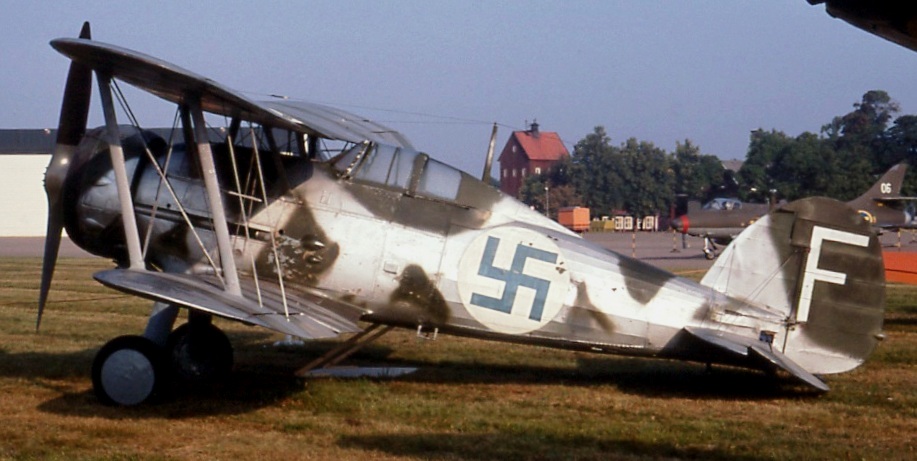 Gloster Gladiator of the Swedish volunteer detachment F19 serving with the Finnish Air Force.  It is shown here at Kauhava, Finland, on 30 March 1940, on its way back to Sweden after the Winter War in Finland.