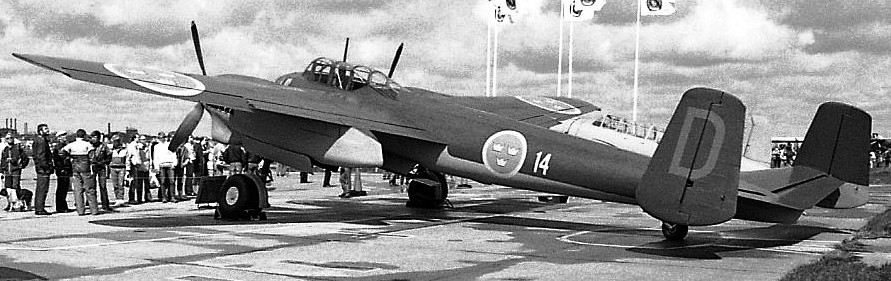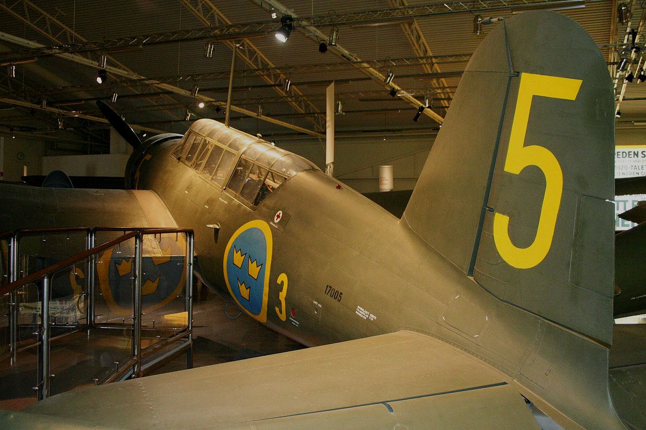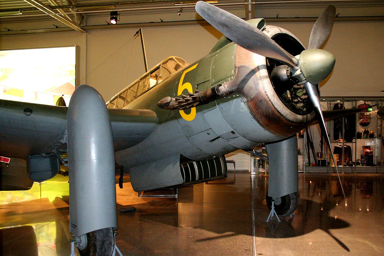 Saab S-17BL (B17), (Serial No. 17005), 5.  Designed as a dive-bomber, the museums B-17 is an S-17 reconnaissance version.  Note the huge undercarriage covers, which doubled up as dive brakes.  Flyvapenmuseum, Malmen.