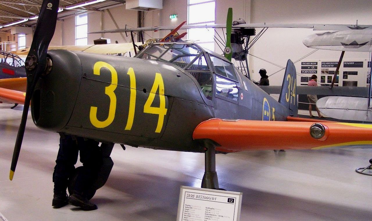 Bucker Bu 181B-1 Bestmann (Sk25), (Serial No. 181), 25000, 76, (D-EXWB).  This aircraft is on display in the main hall of the Flyvapenmuseum, Malmen.