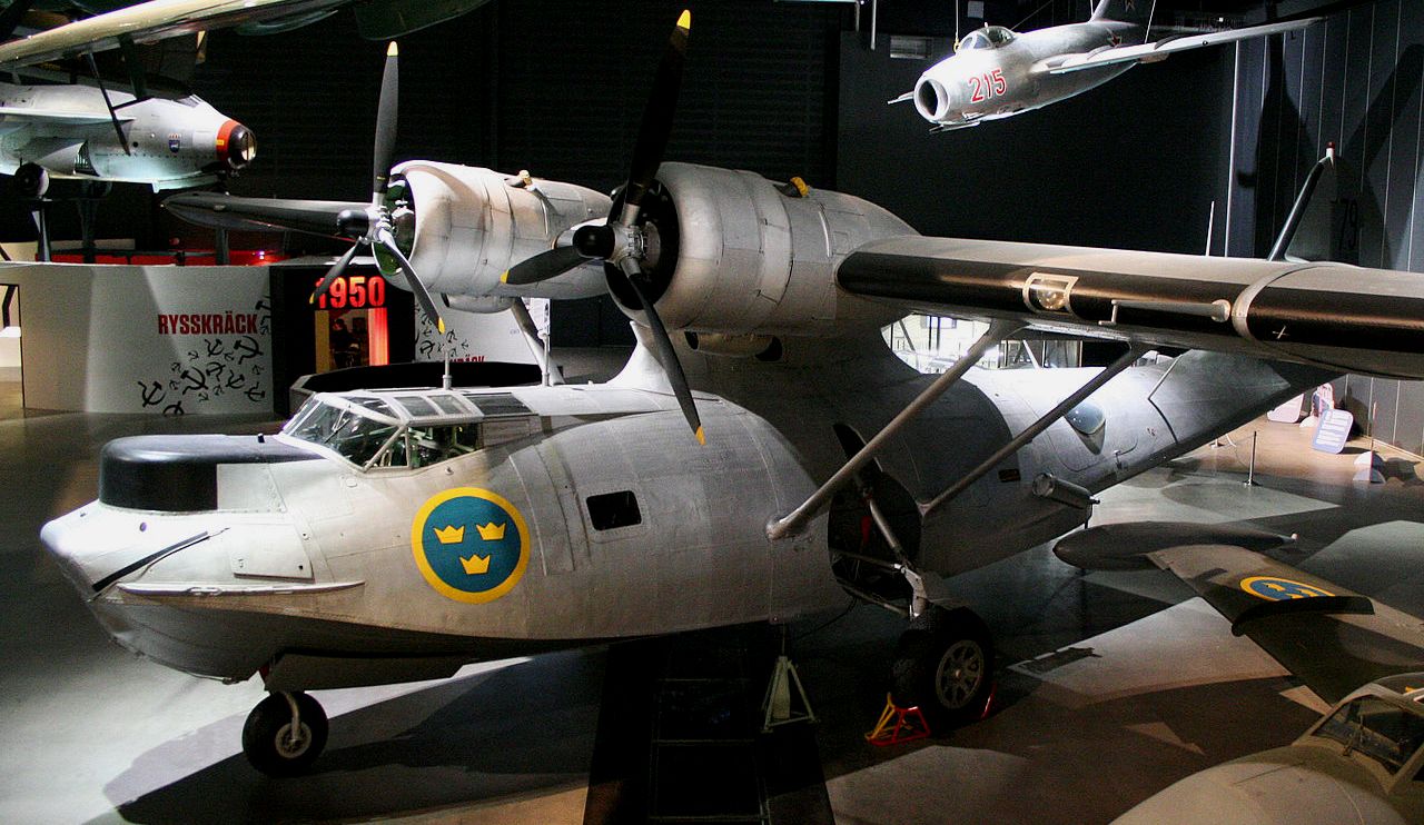 Consolidated PBY-5A Canso (Tp47), (Serial No. 47001), 79, (Serial No. CV-244).  This is a Canadian built PBY which makes it a Canso instead of a Catalina.  It saw RCAF service as RCAF (Serial No. 9810), before passing to the  Swedish Air Force between 1948 and 1966 where it was flown on Search and Rescue (SAR) operations.  It is on display in the Cold War Hall at the Flygvapenmuseum (Swedish Air Force Museum), Malmslätt, Linköping, Sweden.