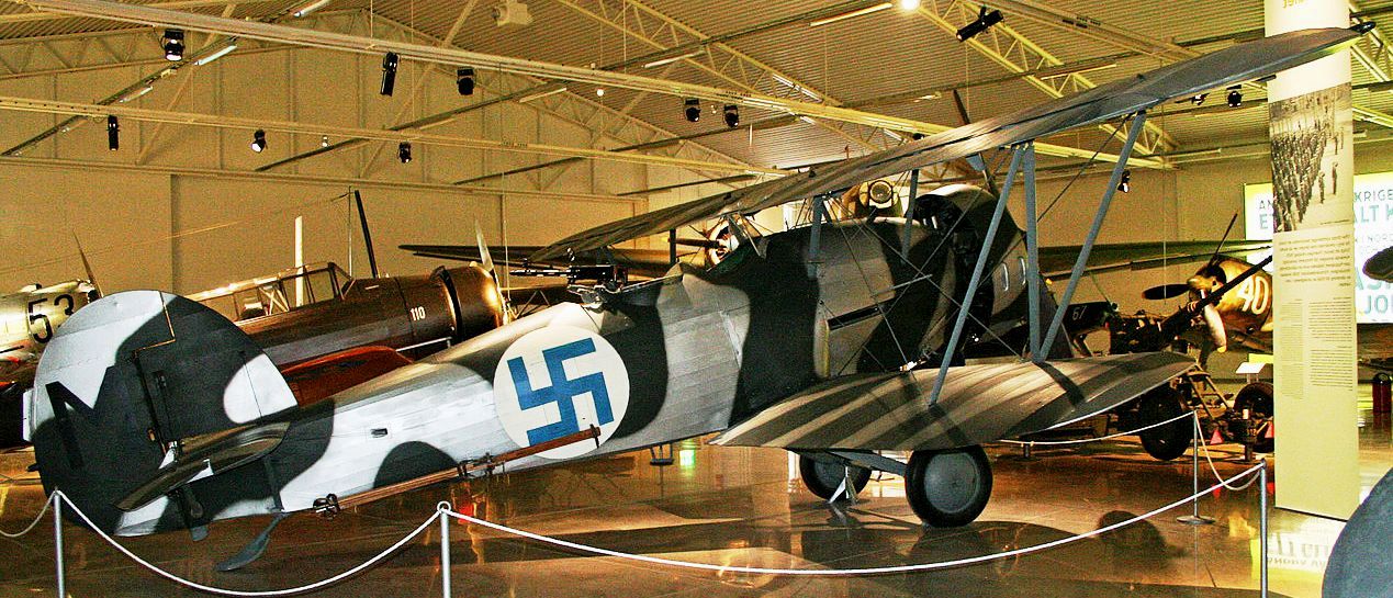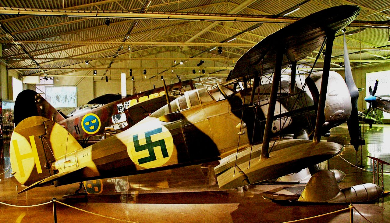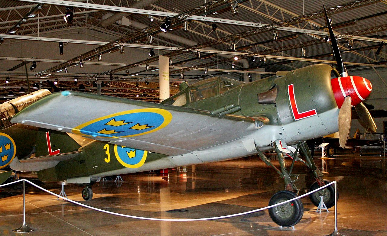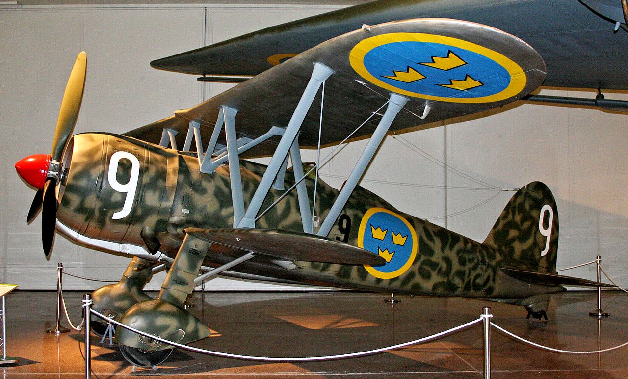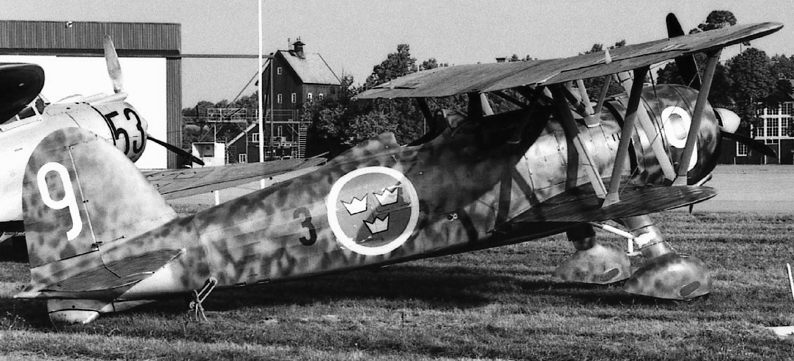 When the Soviet Union attacked Finland in November 1939, Sweden came to its neighbour’s assistance in most ways short of joining the war outright.  A Swedish volunteer infantry brigade and a volunteer air squadron fought in northern Finland in January till March 1940.  The squadron was designated F 19 and consisted of 12 Gloster Gladiator fighters and four Hawker Hart dive-bombers.