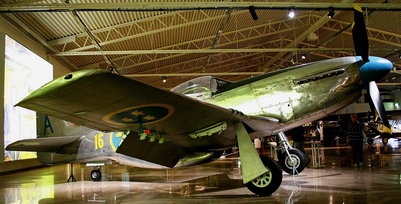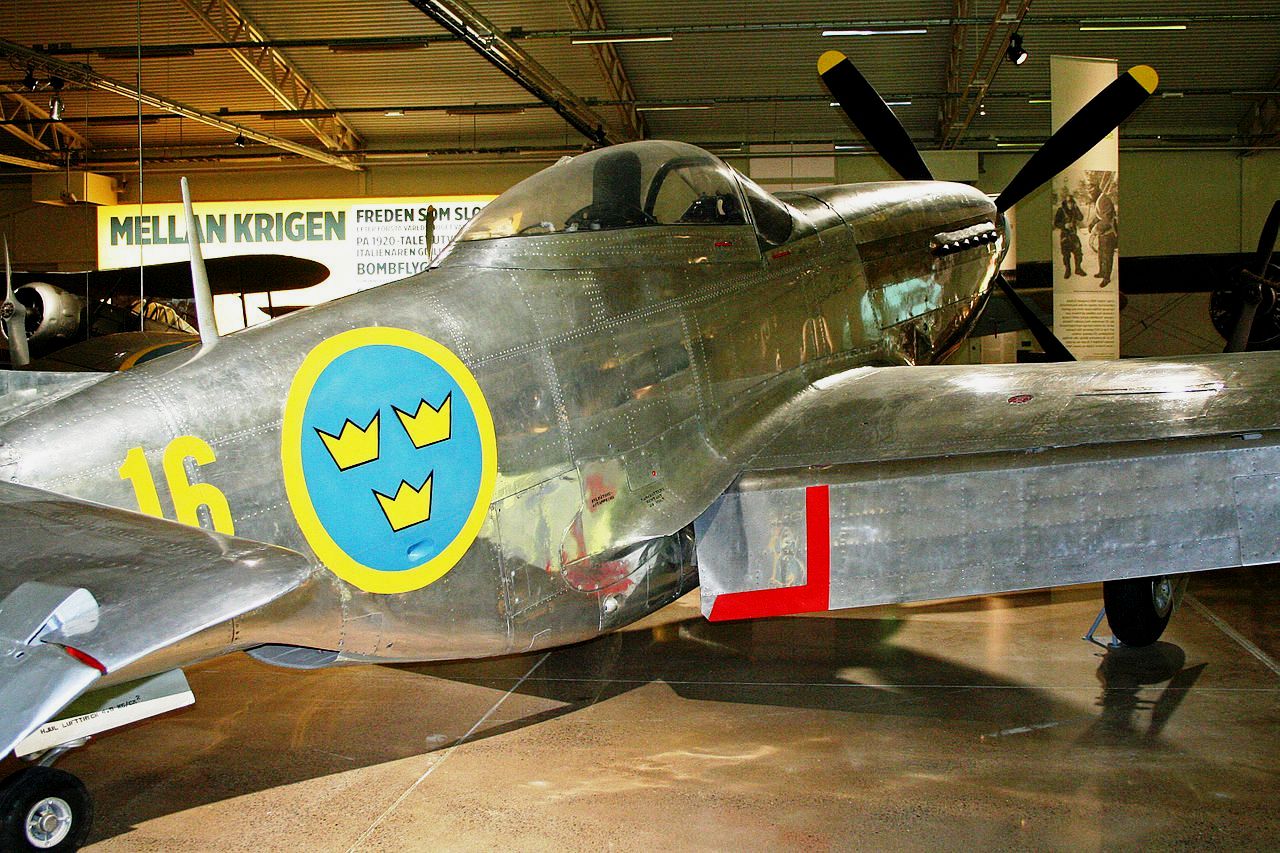 North American P-51D Mustang (Serial No. 44-72112), Swedish Air Force (Serial No. 26084).  The wreckage of this aircraft was salvaged from a moor near Vidsel in 1998.  It has been restored and is now on display at Flygmuseet F21, Lulea.