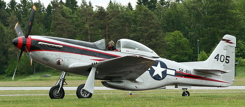 Cavalier F-51D-T Mustang Mk. II (Serial No. 44-10753a), 405, Reg. No. SE-BIL).  This aircraft served with the Fuerza Aérea Salvadoreña (ElSalvador Air Force), (Serial No. FAS405), Angelholm, Sweden.