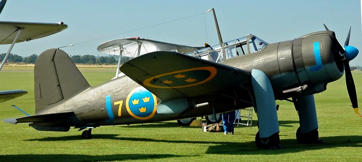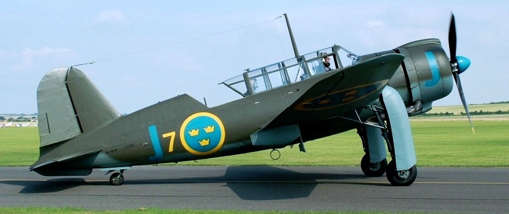 Saab B17A (Serial No. 17239), coded SE-BYH, airworthy, Flyvapenmuseum, Malmen. First flown in 1943 with the Swedish Air Force’s F7 Wing at Satenas. Nicknamed Bla Johan (Blue John). Based at Satenas with the rest of the Swedish Air Force HF fleet.