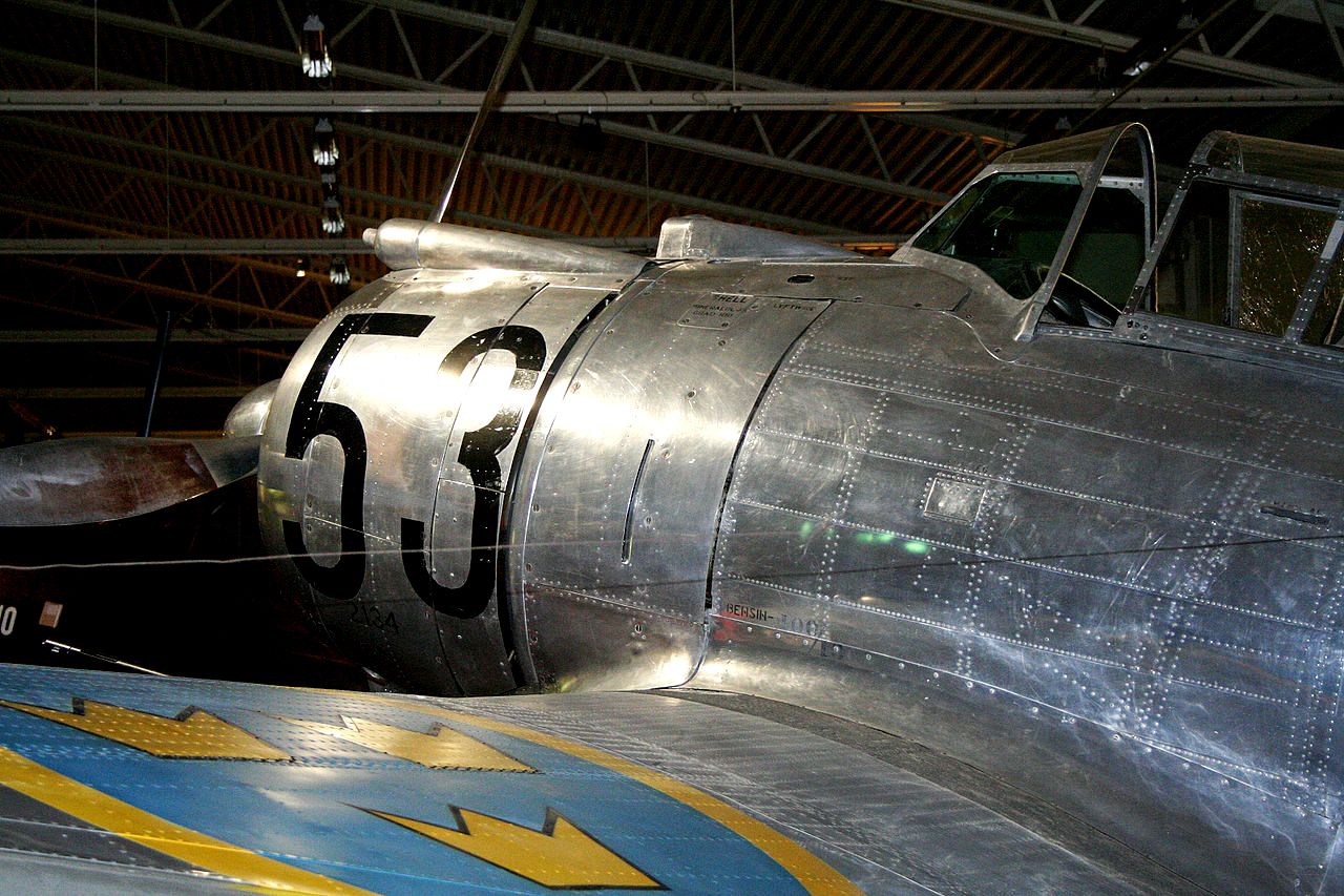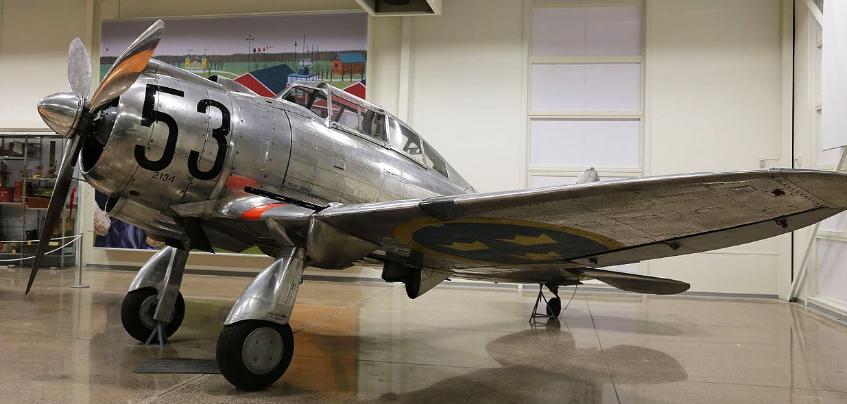 Seversky (P-35) EP-1-106 (J-9), (Serial No. 282-19), 2134, 53.  Built in 1940 and one of 60 to see Swedish AF service. The type remained in service as a fighter until 1946.  Displayed with F3 unit markings.  Flyvapenmuseum, Malmen.