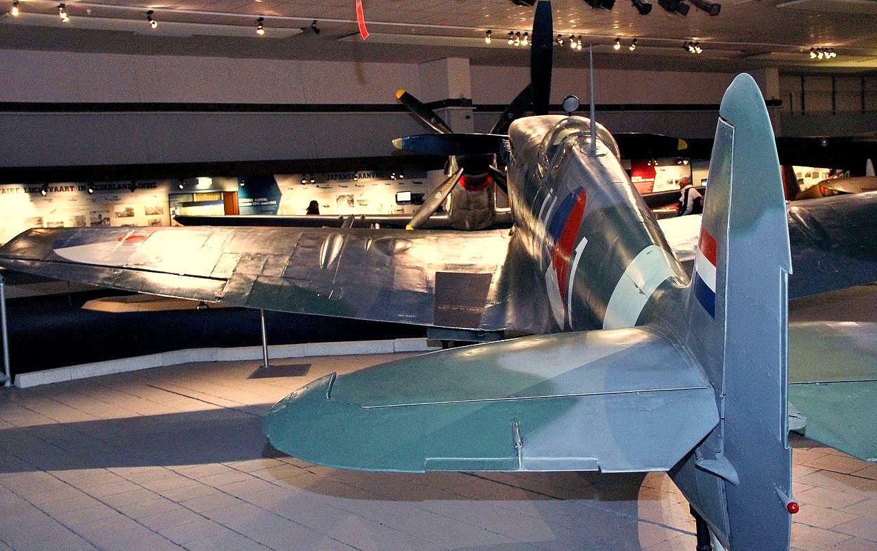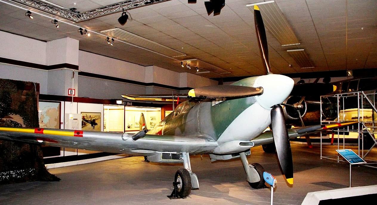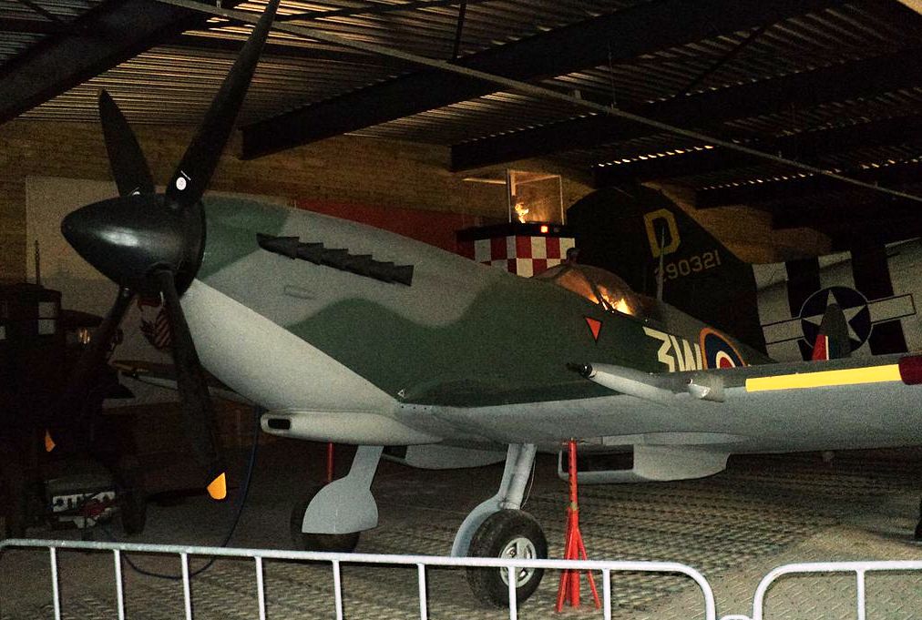 Supermarine Spitfire FR Mk. XVIIIe (Serial No. TP263). Displayed at the National War & Resistance Museum. Ex-Indian Air Force (Serial No. HS649), rebuilt to represent a Mk. XIVc. Painted as (Serial No. NH649), 3W-F, No.322 (Dutch) Squadron.