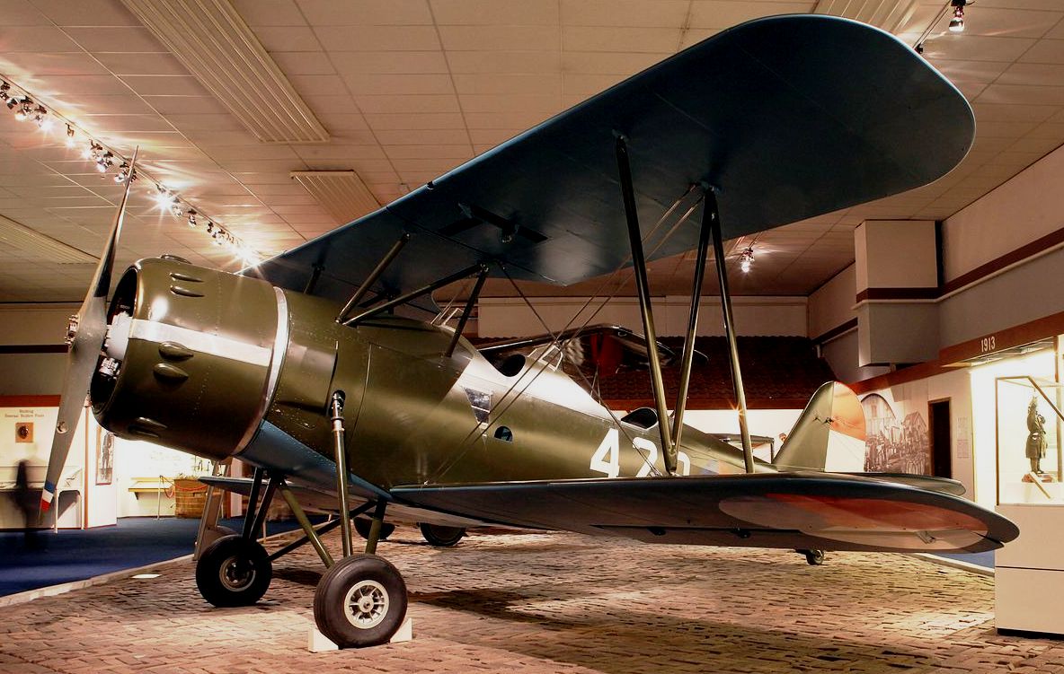 Koolhoven FK-51, two-seat biplane trainer. The F.K.51s were in active use in Royal Dutch Flight Schools during 1939–1940 in the training of young Dutch pilots. The majority of F.K.51s were destroyed in May 1940 on the ground by attacking Luftwaffe aircraft. Militaire Luchtvaart Museum, Soesterberg Air Force Base.