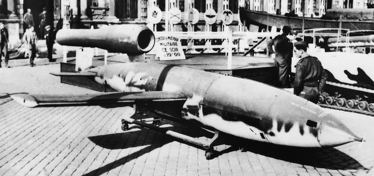 V-1 on display at Place de la mairie, 22 Sep 1945.