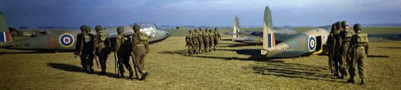 On the evening of 5 June 1944, elements of the 6th Airlanding Brigade, 6th Airborne Division, awaited departure from RAF Tarrant Rushton. The runway featured Hamilcar heavy gliders, with two Horsa troop-carrying gliders in front of them. Flanking the gliders were Handley Page Halifax glider-tugs from Nos. 298 and 644 Squadrons RAF. Fifty-eight Halifax bombers and their gliders took off from Tarrant Rushton on D-Day.