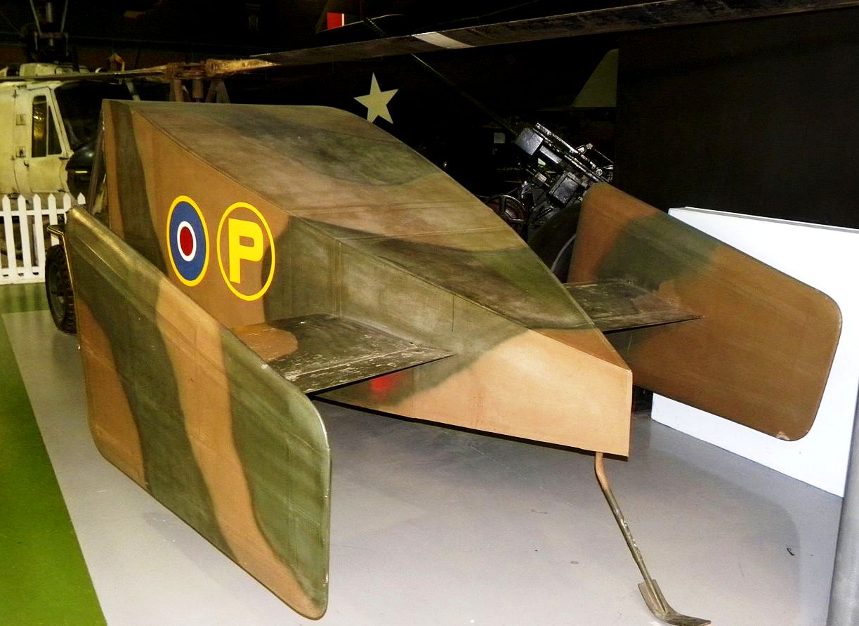 Designed by Austrian Raoul Hafner of the British Airborne Forces Experimental Establishment (AFEE), the Rotabuggy was essentially a jeep converted into an autogiro as a way of giving airborne forces some ground ttansport. Initial flight trials, with the Rotabuggy towed behind a Whitley bomber, proved exhausting to the pilot who had to hang on to the control column which thrashed continuously around the cockpit. On flights where the tow cable remained attached there were some scary moments as the Rotabuggy, on the edge of a stall, touched down after the tow plane left and the driver took over. Development of vehicle-carrying gliders provided a safer and more efficient way of getting jeeps with more equipment (such as towed light guns) to the battlefield and the Rotabuggy never saw service. Another of Hafner’s ideas was the Rotatank, a modified Valentine tank, which fortunately never left the drawing board.