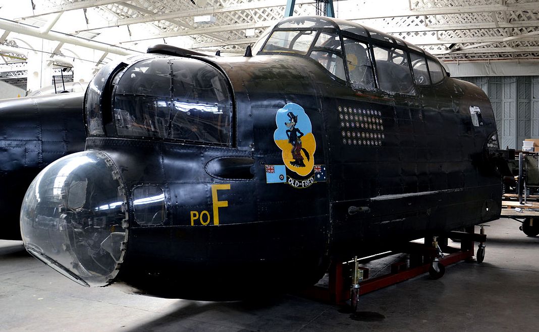 Avro Lancaster Mk. X (Serial No. DV372), “Old Fred”, forward fuselage, PO-F, No. 467 (RAAF) Squadron, Imperial War Museum, Lambeth.