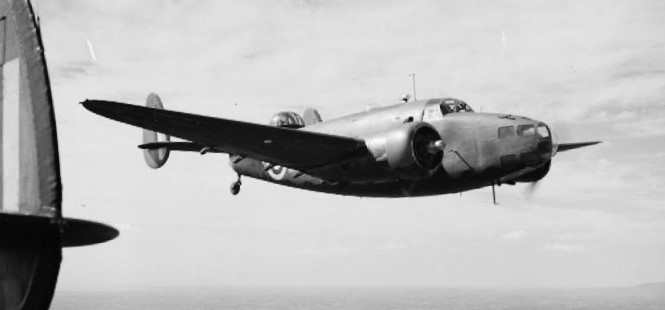 Hudson Mark I, T9277 QX-W, of No. 224 Squadron RAF based at Leuchars, Fife, in flight off the Scottish coast. This was a late production Mark I, fitted with Hydromatic propellers and early ASV Mark 1 radar. T9277 went missing while on a patrol off Norway on 9 December 1940.