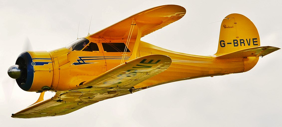 Beechcraft Staggerwing, Reg. No. G-BRVE, The Fighter Collection, Duxford. Built in 1945, flown during the Second World War by the Royal Navy as Traveller Mk. I (Serial No. FT475). This aircraft was allocated to the United States Navy post-war before being sold into civilian ownership. It was acquired by the Fighter Collection in 2005.