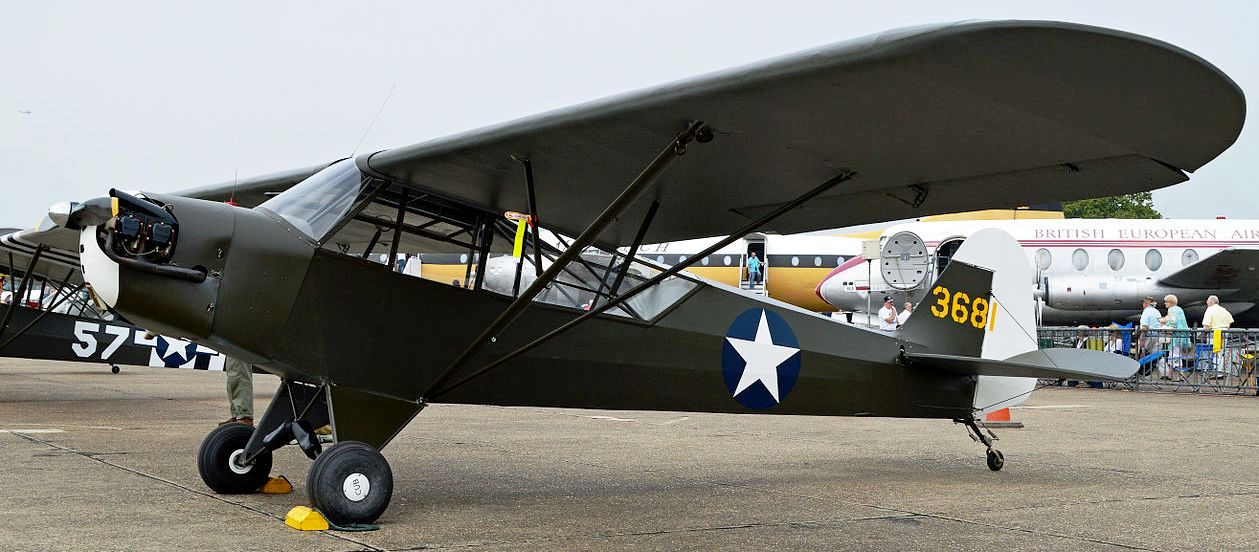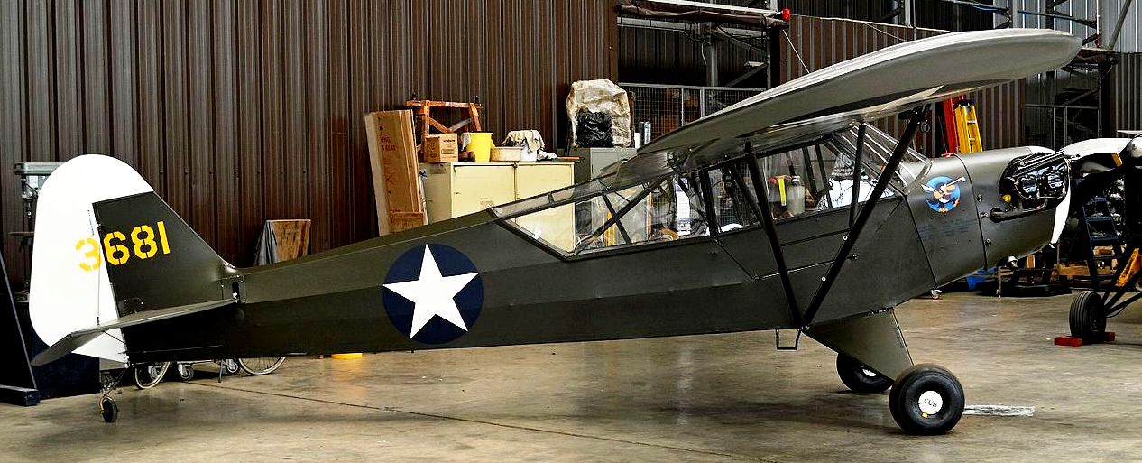 Piper L-4J Cub (Serial No. 43-0681), c/n 12544, Reg. No. G-AXGP), painted as 3681. Imperial War Museum, Duxford, Cambridgeshire.