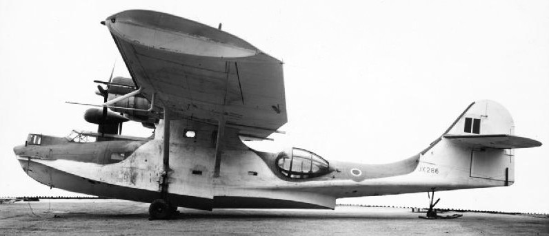 Royal Air Force Catalina Mark IVB (s/n JX286), on the ground at Saunders Roe Aircraft Ltd, Beaumaris, Anglesey (UK). JX286 served first with the RAF Coastal Command Development Unit, followed by No. 302 Ferry Training Unit, and finally with No. 205 Squadron RAF in Ceylon. The background of the photograph has been deleted by the censor.