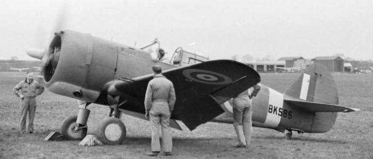Curtis Mohawk Mk. IV (Serial No. AR645), on the ground at the Air Service Training Ltd works, Hamble Hampshire, shortly before being flown to the Aeroplane and Armament Experimental Establishment at Boscombe Down, Wiltshire, for handling trials.