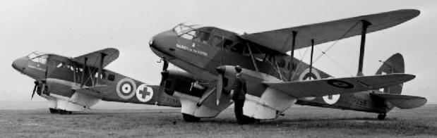 de Havilland DH.89 Rapide and DH.89A Rapide ambulance aircraft, (Serial No. Z7258), ?Women of the Empire? and (Serial No. Z7261), ?Women of Britain?, at Hendon, Middlesex, the day before they were presented to No. 24 Squadron RAF by the ?Silver Thimble Fund?. Originally civilian aircraft, Reg. No. Z7258 (G-AFMH) and Reg. No. Z7261 (G-AFMJ), these aircraft were impressed for the RAF in July 1940.