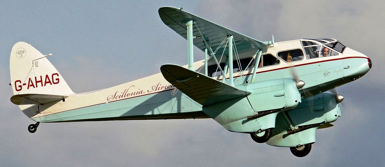 de Havilland DH.89A Dragon Rapide (Serial No.), Reg. No. G-AHAG, in the livery of Scillonia Airways, airworthy, based at Membury airfield, Berkshire.