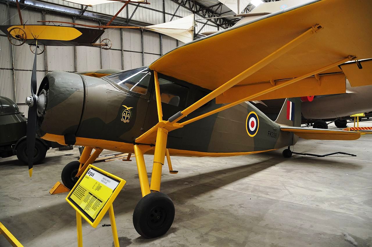 Fairchild Argus II (Serial No. FK338), Yorkshire Air Museum, Elvington, Yorkshire.  The Argus II at Elvington arrived in England in August 1942 and served for most of the Second World War with the ATA at No.2 Ferry Pool, Whitchurch.  After the War, it was acquired by the United States Flying Club and registered as G-AJOZ. It was finally withdrawn from use in 1963.  After many years in various collections, the Argus was acquired by the Yorkshire Air Museum in June 2000.