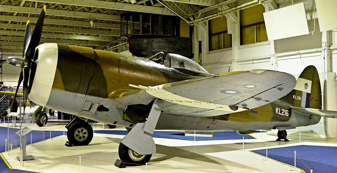 Republic P-47D Thunderbolt Mk. II (Serial No. 45-49295), painted as (RAF Serial No. KL216). There are no actual RAF P-47s in existence. Royal Air Force Museum London, Hendon.