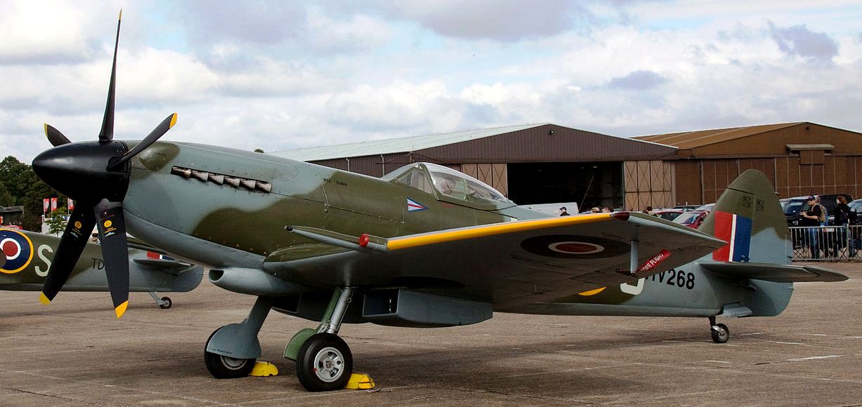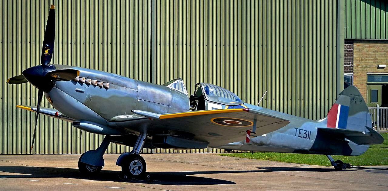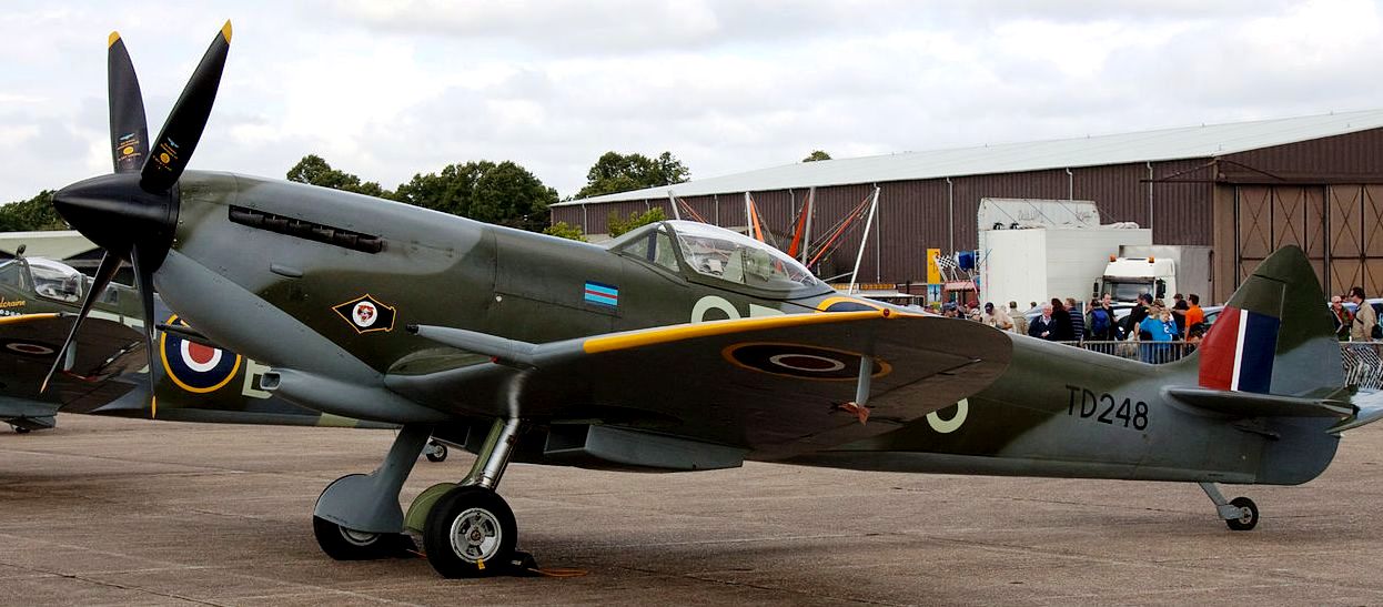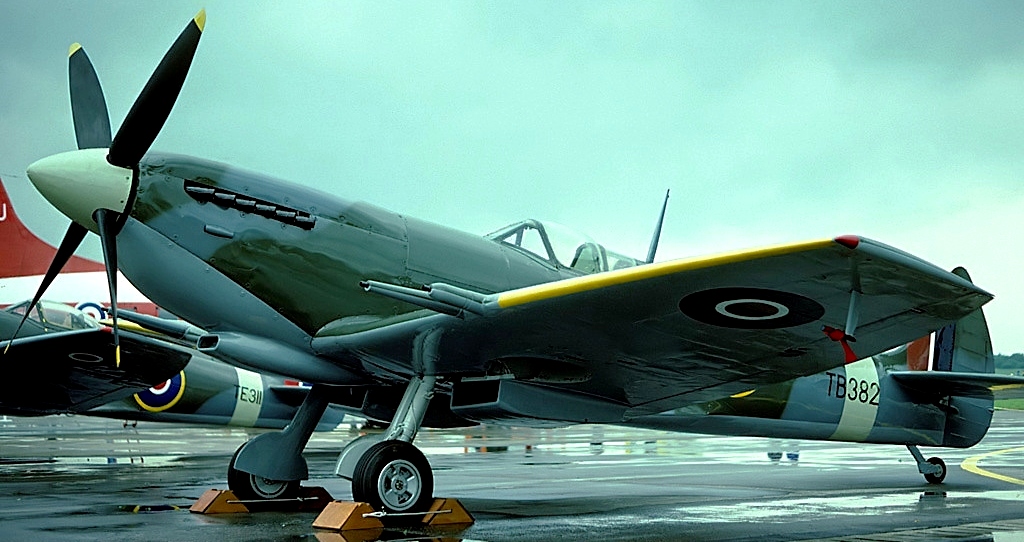 Supermarine Spitfire LF Mk. XVIe (Serial No. TE311), 4D-V, 74 (Tiger) Squadron, the personal aircraft of Squadron Leader AJ ‘Tony’ Reeves DFC, the Squadron’s Commanding Officer from the end of December 1944. Battle of Britain Memorial Flight, RAF Coningsby, Lincolnshire. Airworthy. This aircraft is being repainted to represent (Serial No. TD240), the personal aircraft of 131 (Polish) Wing’s CO, Gp Capt Aleksander Gabszewicz, DSO, DFC. Repainted as (Serial No. TD322), coded 3W-M of No. 322 (Duthc) Squadron. The aircraft’s Movement Card indicates it was awaiting allocation from Castle Bromwich on 8 June 1945 and at 39 MU eight days later. On 3 October the aircraft was allocated to the ECFS Handling Squadron at Hullavington for trials. In February 1946 it was transferred to 33, or possibly 39 MU and remained in storage until being allocated to 1689 FPT Flight at Aston Down on 31 May 1951. On 21 June it was involved in a landing accident while being piloted by F/Lt. RM Doig (South African), requiring on-site repair by Vickers Armstrong, returning to service on 13 December. In April 1953 the aircraft was allocated to the Ferry Training Unit at Benson, however by late September it was transferred back to storage with 33 MU. TE311’s final operational use was a very brief allocation in January/February 1954 to 2 CAACU Langham, before returning to 33 MU. On 11 August 1955, the aircraft was sent to Tangmere for Gate Guardian duties until being loaned for participation in the Battle of Britain Film, with a mock wooden ‘high back’ and possibly restored to taxi condition. In 1971 it was thought to be back at Benson but on the gate, though at some point (possibly 1977) it was transferred to the RAF Exhibition Flight. In 2000 TE311 arrived at the BBMF alongside TB382 as spare parts airframes. In 2002, TE311 was determined to be in a good enough condition to be restored to fly, and had its first flight in 58 years in October 2012. Since May 2018, it has flown coded SZ-G, markings once carried by TD240 of No. 316 Polish Fighter Squadron. (Wikipedia)
