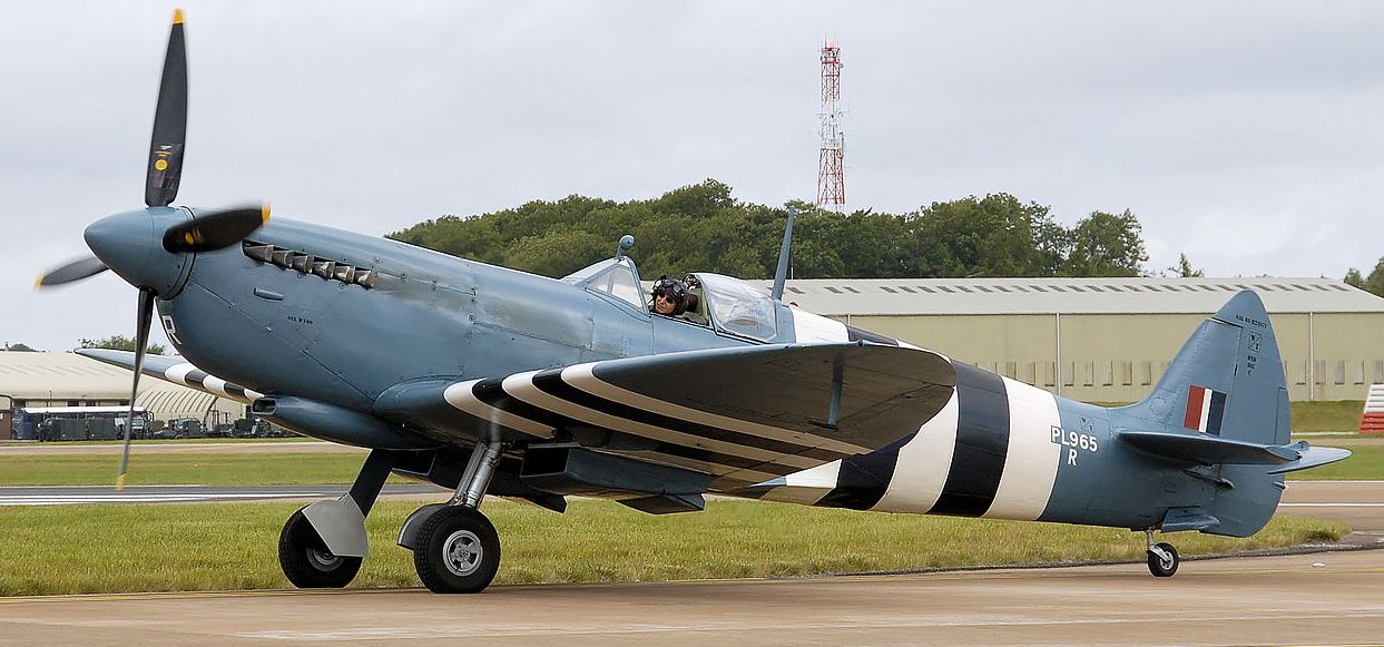Supermarine Spitfire PR Mk. XI (Serial No. PL965), 222 (Natal) Squadron, Reg. No. G-MKXI, -R, 16, Squadron, Peter Teichman, Hangar 11 Collection, North Weald, Essex. Airworthy. This aircraft conducted over forty operational sorties with 16 Squadron 1944–45. (Wikipedia)