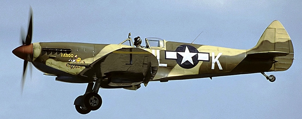 Supermarine Spitfire LF Mk. XVIe (Serial No. TE184), “Fargo Express” flown in this colour scheme for one season only. Operated from the Biggin Hill Heritage Hangar, Biggin Hill, Kent. Since 2017, it has had the colours and markings of 9N-B to represent the Mk.XVI flown by Czechoslovak ace Flt Lt Otto Smik who was Squadron Commander of 127 Squadron when based at Grimbergen, Belgium, in November 1944. During June 2014 it was briefly marked as ZF-U of 308 (Polish) Squadron to replicate the mount of Jerzy Glowczewski, a veteran who had flown a similarly marked and coded Spitfire on 1 January 1945 when he claimed an FW-190 over Ghent, Belgium. The Air Picnic at the Polish Air Museum in Kraków on Saturday 28 June 2014 was attended by both TE184 in these special markings and also Jerzy Glowczewski, allowing him to be reunited with a machine in ‘his’ markings. TE184 was brought to Poland for this occasion by Jacek Mainka, the first Pole ever to fly a Spitfire into and in Poland. Jacek’s late grandfather, Ryszard Kwiatkowski, was a mechanic with 303 and 308 Squadrons during the war and saw Glowczewski off in ZF-U for that mission. (Wikipedia)