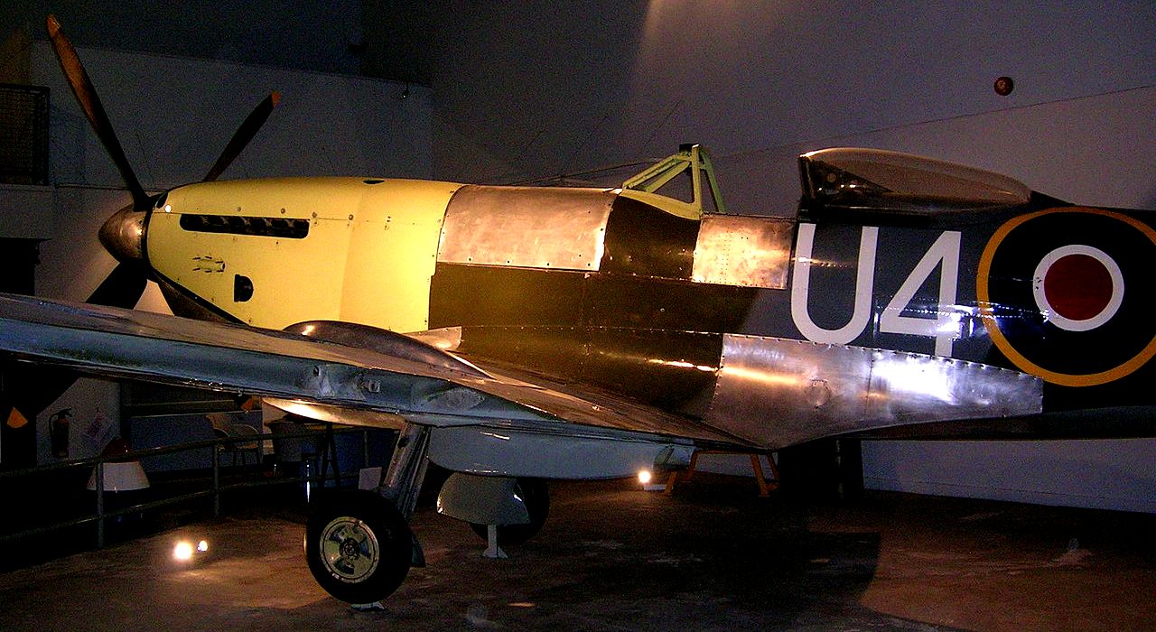 Supermarine Spitfire LF Mk. XVIe (Serial No. RW388), U4-U. Built at Castle Bromwich in 1945, taken on charge by 6 MU at Brize Norton on 18 July 1945, then issued to No. 667 Sqn where it was damaged in a flying accident. Repaired and aloocated to No. 612 Sqn in 1951, then going to the Fighter Command Control and Reporting School. Damaged a second time, it was retired and became a gate guard at Benson and later at Andover. In 1972 it was presented to the City of Stoke-on-Trent. The Potteries Museum & Art Gallery, Hanley, Stoke-on-Trent, Staffordshire. It is fitted with a Merlin 266 (Packard) engine. (Wikipedia)