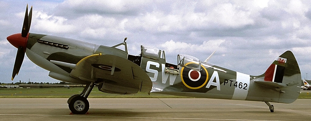Supermarine Spitfire Tr. 9 (Serial No. PT462), Reg. No. G-CTIX, SW-A, Dragon Flight, Abergele, North Wales. Airworthy. Owned by the Aircraft Restoration Company (ARCo) and operated by Aerial Collective Duxford. It wears the markings SW-A of 253 Squadron RAF.