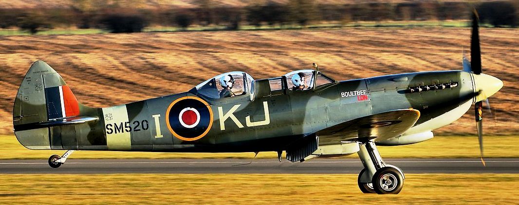 Supermarine Spitfire Tr. 9 (Serial No. SM520), coded KJ-I, Reg. No. G-ILDA, Steve Brooks, Goodwood. Airworthy. Repainted in 2024 to represent (Serial No. X4382), coded LO-G, No. 602 Squadron RAF. Originally built in 1944 at Castle Bromwich under construction number CBAF10164. Found in a Scrap yard in South Africa in the 1980âs and restored to airworthy condition in 2008. Owned and operated by Spitfires.com, based at Goodwood Aerodrome, West Sussex and Solent Airport, Hampshire for Spitfire experience flights and Spitfire pilot training. (Wikipedia)