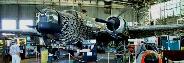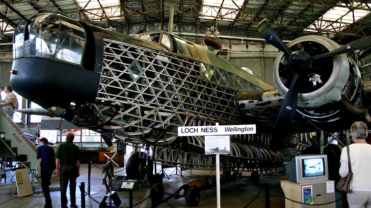Vickers Wellington Mk. IA (Serial No. N2980), “R-for-Robert“, built in 1939 at Brooklands. This aircraft flew with 149 Squadron and later 37 Squadron, Brooklands Museum, Weybridge, Surrey. This aircraft took part in the RAF’s daylight bombing raids on Germany early in the Second World War but later lost power during a training flight on 31 December 1940 and ditched in Loch Ness. Most of the aircrew survived except for the rear gunner, who was killed when his parachute failed to open. The aircraft was recovered from the bottom of Loch Ness in September 1985 and restored in the late 1980s and 1990s.